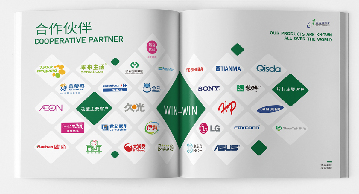 品牌介紹:蘇州金寶麗包裝部門,專注于PET生鮮包裝的研發(fā)、生產(chǎn)、營銷于一體的現(xiàn)代化運(yùn)營模式,產(chǎn)品主要包括各種水果盒、沙拉盒、果切盒、禽蛋盒、生鮮托盤等視頻包裝容器,自主品牌“好盒作”全新全意為客戶提供一站式生鮮包裝的解決方案,畫冊設(shè)計(jì)風(fēng)格整體簡潔大氣、黑色底更好突出透明盒的品質(zhì)。