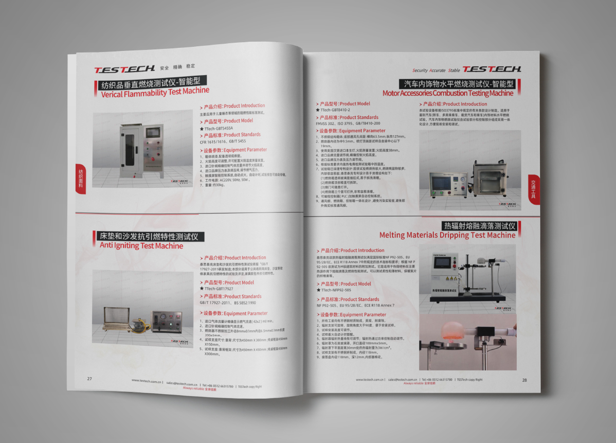 泰思泰克(蘇州)檢測儀器科技有限公司多年從事并致力于高端阻燃測試設備的研發、生產、銷售及技術服務!泰思泰克科技有限公司-擁有國際化視野-致力于提升中國火災檢測、阻燃測試設備的技術水平。公司成立之初依托國際化的團隊、美國技術輸入及進口傳感器資源既以中高端品牌介入中國市場為中國客戶提供安全、精確、穩定的檢測儀器及解決方案!經過多年的沉淀和積累,泰思泰克深入掌握所有燃燒測試及安全相關技術。公司在煙氣密度分析、煙氣毒性分析、燃燒熱釋放測量技術、熱輻射供火的安全性技術、標準火焰的穩定性控制、火焰熱量及溫度的校準系統等相關技術均達到國際領先水平。