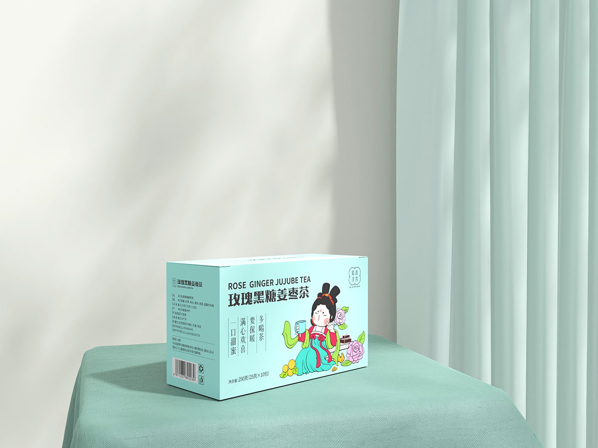 品牌口號:多喝茶 要保暖 滿口歡喜 一口甜蜜第二:花茶包裝設計超級符號設計