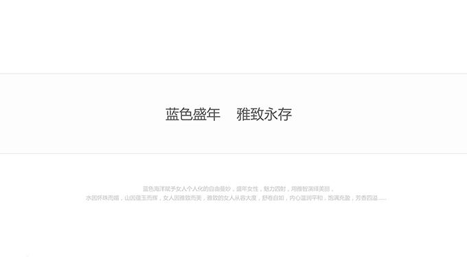 項目簡介:藍色海洋賦予女人個人化的自由曼妙,盛年女性,魅力四射,用雅智演繹美麗,水因懷珠而媚,山因蘊玉而輝,女人因雅致而美,雅致的女人從容大度,舒卷自如,內心溫潤平和,飽滿充盈,芳香四溢