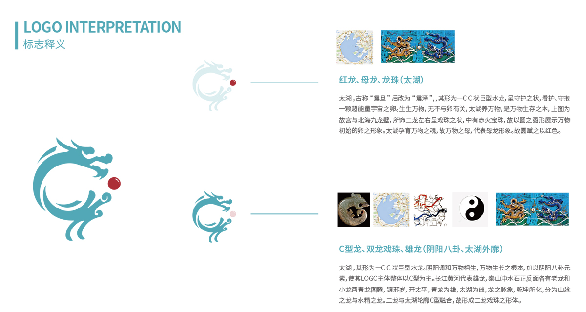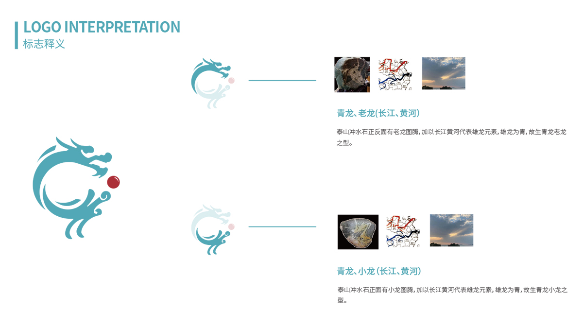 泰山沖水石正反面有老龍圖騰,加以長江黃河代表雄龍元素,雄龍為青,故生青龍老龍之型,整體造型是以太湖為原型,延伸出的龍的造型,太湖本身就是一顆耀眼的明珠。整個的設計還是