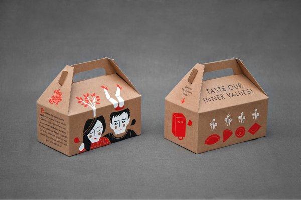 德國設計師Alexandra為快餐店The Inside設計的包裝。the inside主營各樣的餃子——煮的,炸的。the inside很明顯要讓人們關注包裝背后那些美味的食物,包裝很搞怪,設計了一些小人,他們的大腦里都是食物!