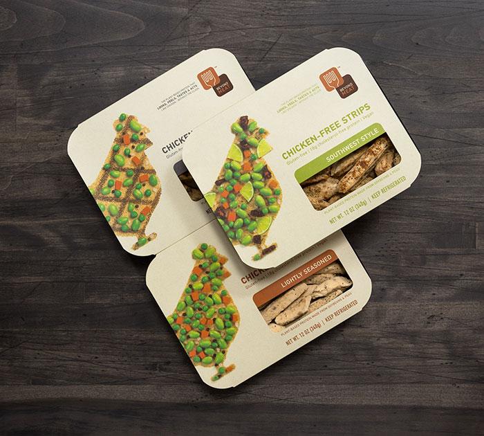 這個冷凍食品包裝設計形象許,除了展示凍肉的完美鮮亮的外觀之外,是完全可以取代動物蛋白的植物蛋白產品,這是該公司出現在貨架上的第一個產品。