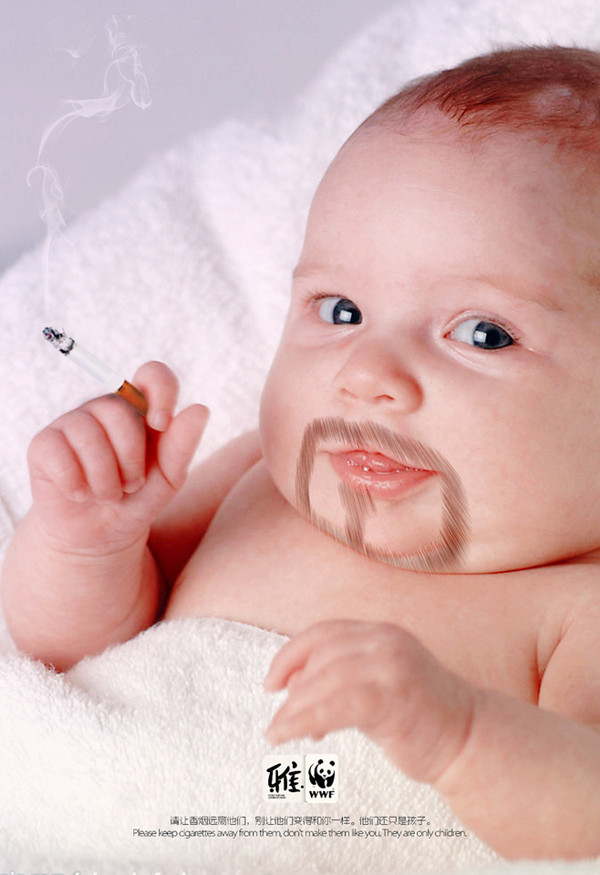 研究表明,如果孩子在吸煙環境下長大,其動脈會早衰,在成年后患心血管病的風險也會升高。設計師用這樣一張詼諧的作品表達了讓孩子遠離二手煙的嚴肅話題,希望能夠呼吁更多人給孩子創造一片清新世界。(圖/花瓣網設計達人「xiaour_z」公益廣告作品)