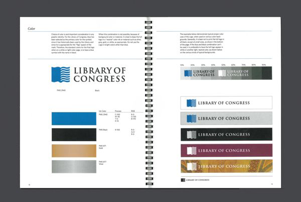 這是Chermayeff & Geismar & Haviv 為美國國會圖書館(Library of Congress)設計的品牌視覺形象。標志由一本書和美國國旗組合而成。