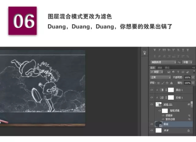 簡單粗暴,利用PS設計繪制黑板上的手繪粉筆畫效果!