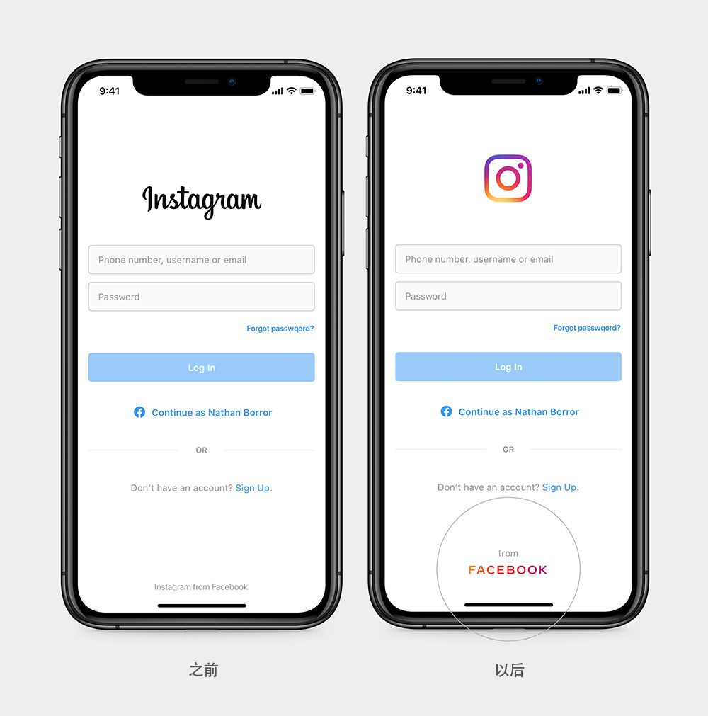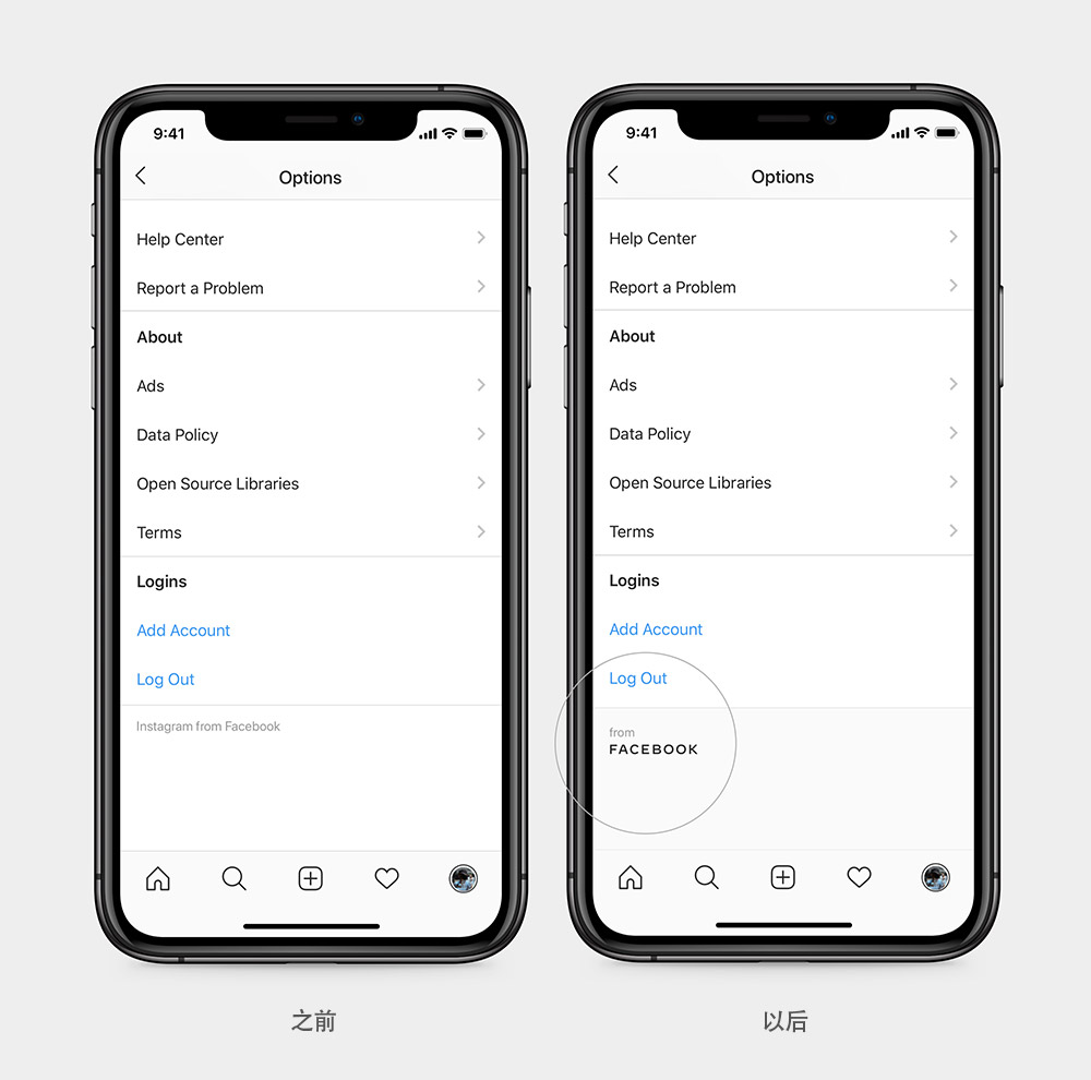 公司新字標基于無襯線字體設計完成,其中全部采用大寫形式是和Facebook產品LOGO最直接的一種區分方式。