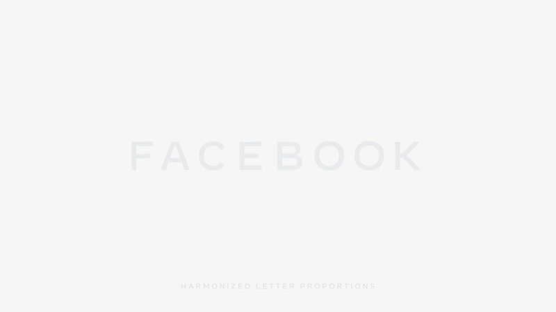 細節方面,字標具有自適應功能,比如在狹小的空間內,「Facebook」將會縮減為 「FB」字母組合,這個縮寫建立在其股票代碼的基礎上,已與Facebook建立緊密聯系。