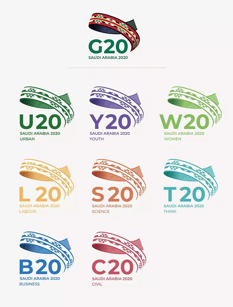當天下午,沙特阿拉伯也正式揭開了2020年二十國集團(G20)峰會官方LOGO的神秘面紗。據介紹,該LOGO由沙特國王 薩勒曼·本·阿卜杜勒-阿齊茲·阿勒沙特(Salman bin Abdulaziz Al Saud)委托給28歲的沙特阿拉伯設計師 Mohammed Al-Hawas 設計完成。