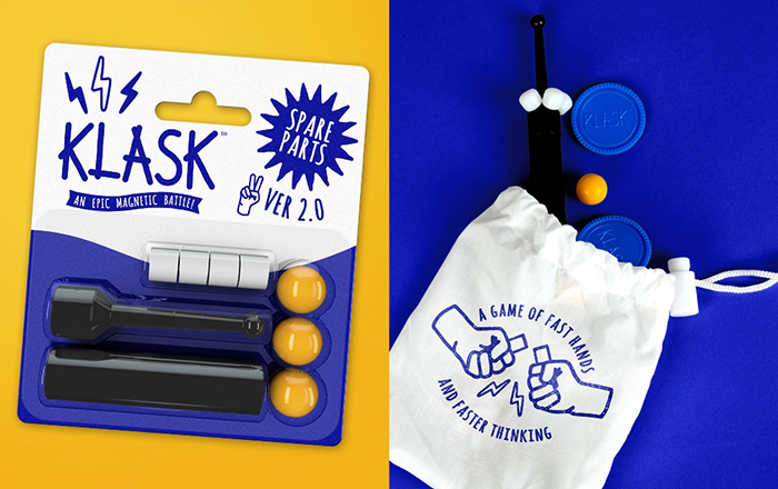 KLASK 磁鐵棋在桌游里可謂是大名鼎鼎,這是一個(gè)屬于全家的游戲,需要父母齊上陣,充分調(diào)動(dòng)起孩子的智慧和積極性,以及合作能力。在2014獲得最佳游戲提名,2016年rets Spil獲得最佳家庭游戲提名,在2017還曾被斯皮爾斯·賈雷斯推薦。于今年12月份啟動(dòng)新LOGO設(shè)計(jì).