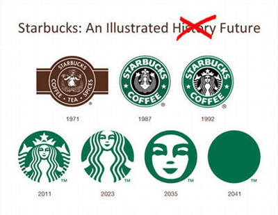 (因此,有人惡搞做出了「星巴克 logo 設(shè)計預(yù)測」美人魚圖標會變得愈來愈近。)