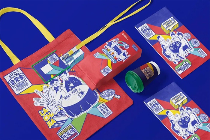 品牌以“常思念,常回家”為品牌solgan,繼而延伸了眾多與思念和家鄉(xiāng)相關(guān)的文案,這些文案用立體的對話框表現(xiàn)出來,文案字體的陰影顏色很是豐富,這些對話框也被用于插畫的場景之中。品牌的插畫設(shè)計,是當(dāng)下流行的輕插畫,通過線條和色塊像條漫一樣塑造出既定場景,而與條漫不同的是,插畫的內(nèi)容都用虛線勾勒出輪廓,看起來既像是插畫的固定內(nèi)容,又像是脫離了紙張,很有貼紙的感覺。