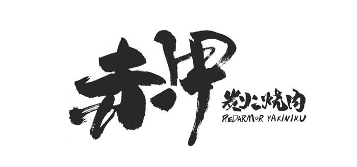 赤甲是一個(gè)開(kāi)在廣州的日式燒肉品牌,這一名稱是從火焰和武士中汲取靈感,餐廳定位為武士意志的炭火燒肉店。濃墨的毛筆揮斥出赤甲二字,力道十足,像武士揮刀時(shí)的決絕;炭火燒肉的品類標(biāo)識(shí)居于右下角,同樣也是用毛筆書(shū)寫(xiě),看起來(lái)很統(tǒng)一。品牌的主色調(diào)為紅色,與炭火燒肉的品類屬性契合,黑灰的輔助色,很好地刻畫(huà)了武士的形象。